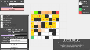 "A* Visualiser" is a visual editor application presenting working of A* algorithm on a 2D grid map. Control map size by a single click which can take from 3x3 to 30x30 tiles! Change position, weight and passability of every single tile! Switch between 4-way and 8-way (diagonal) pathfinding movement! Adjust heuristic weight and select one of 3 supported types (Manhattan, Euclidean & Chebyshev). Observe finding a path live with the Simulation Mode enabled! Select the Timed or Stepwise behaviour of the simulation! Take a screenshot of your beautiful map without or with a found path (only Standalone & Android versions)!